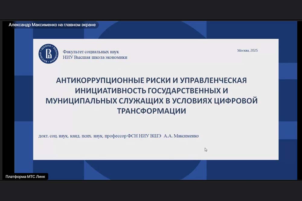 Главный научный сотрудник проектно-учебной лаборатории антикоррупционной политики Национального исследовательского университета «Высшая школа экономики», доктор социологических наук, кандидат психологических наук, доцент Александр Максименко выступил с докладом на тему «Антикоррупционные риски и управленческая инициативность государственных и муниципальных служащих в условиях цифровой трансформации». В своём выступлении он рассмотрел особенности мало изученного феномена коррупциофобии, в качестве одного из видов разновидности социофобии.