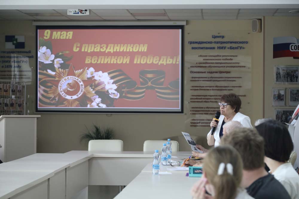 Открывая встречу, сотрудник Центра гражданско-патриотического воспитания обучающихся Игорь Пархомов рассказал присутствующим о подвигах сотрудников и выпускников тогда ещё Белгородского государственного педагогического института имени М.С. Ольминского. Многие прошли всю войну, встретили победу в Берлине, а затем вернулись в Белгород и посвятили долгие годы работы педагогическому труду. Летопись фронтовых судеб по крупицам собрали сотрудники Центра истории НИУ «БелГУ».
