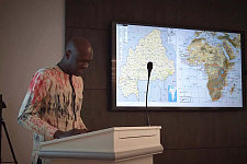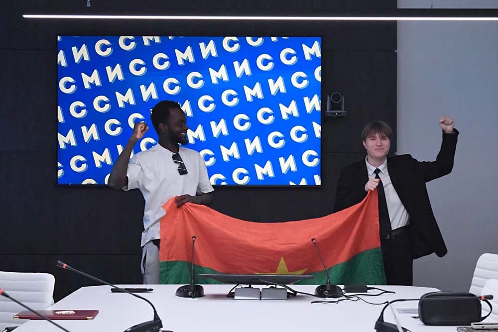Ильбудо Абдул Азиза, несмотря на неплохое владение русским языком, предпочёл рассказать о внутриполитических коллизиях в стране на французском, в силу эмоционального напряжения. Переводчик Виктория Шпеттер (секретарь СМИС, владеет тремя языками) помогала передать суть происходящих событий, однако Сану Ибрагим Ромуальдо перехватил инициативу, и, уже стоя у карты, рассказывал вместе с Ильбудо Абдул Азизом о террористическом вторжении в страну со стороны соседних государств – Мали и Нигера. Буркинцы обозначили высокую значимость действий Российской Федерации в обретении независимости и выдворении террористов с их территории.