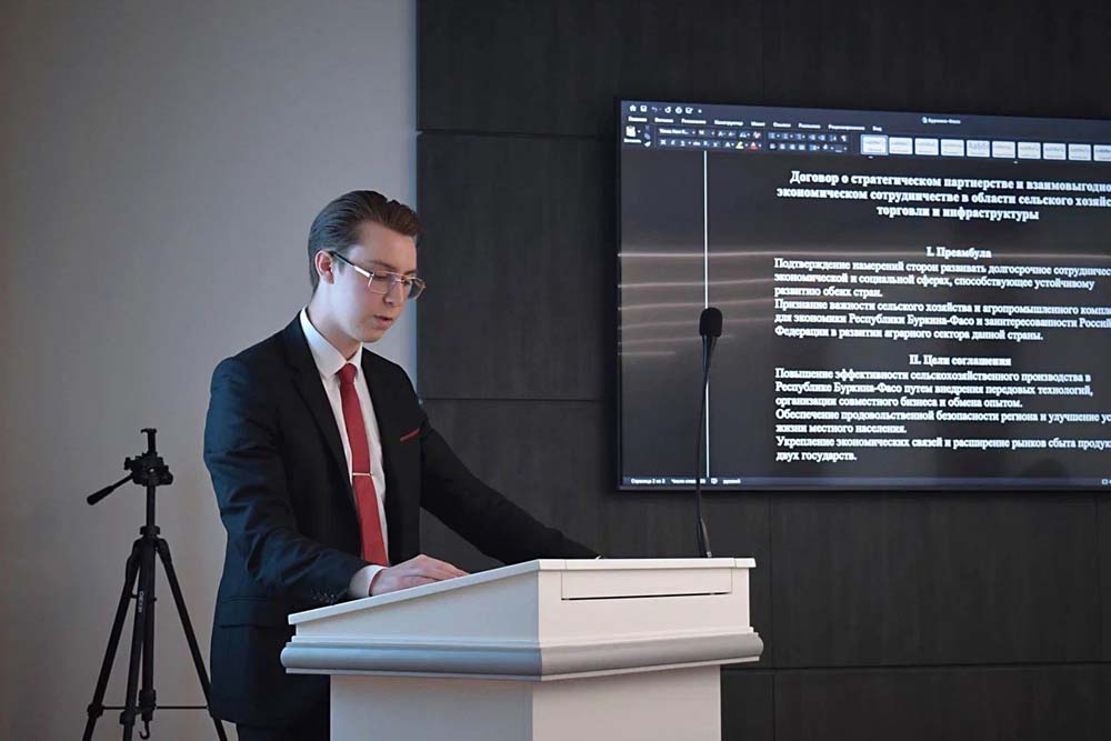В ходе заседания российские и буркинские студенты представили различные возможности сотрудничества и взаимодействия между странами в сфере экономических, медицинских, фармацевтических, культурных, образовательных, стратегических вопросов.