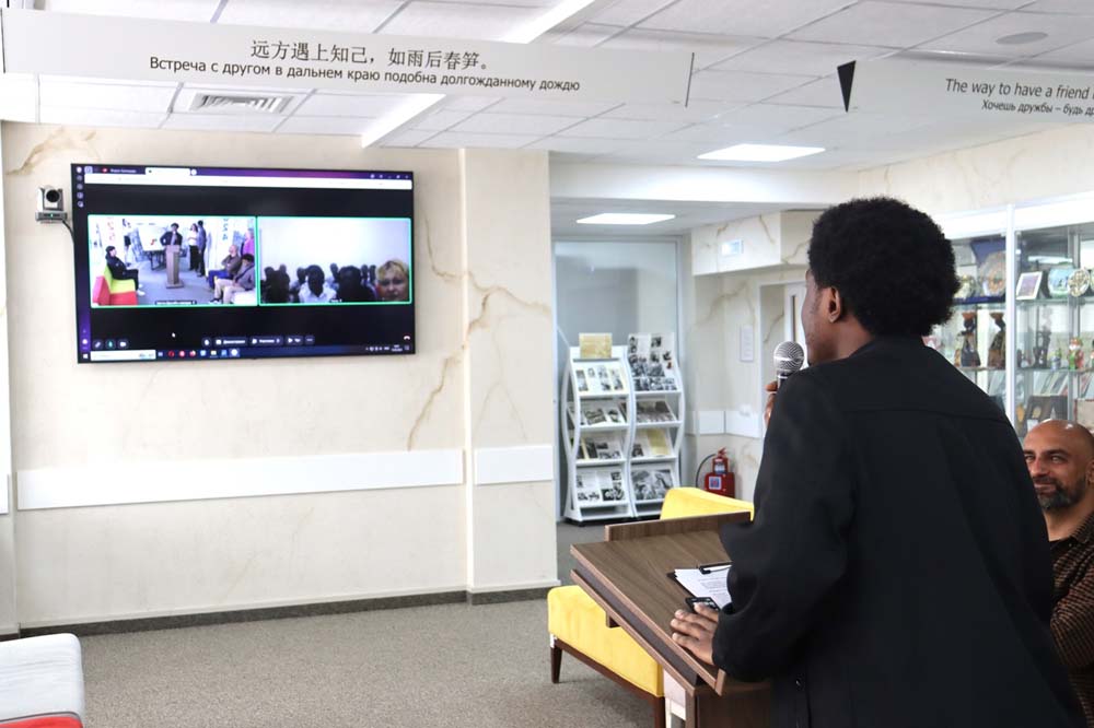 Ольга Лютова и Рафаэл Рибейро Саншес прочитали небольшую лекцию о португальском языке и литературах стран-лузофонов. Наталья Казинцева и студенты русского класса при университете Ангостиньо Нето рассказали, как проходит празднование Всемирного дня португальского языка в Анголе, и прочитали стихи Луиша де Камоэнса и Антонио Агостиньо Нето.