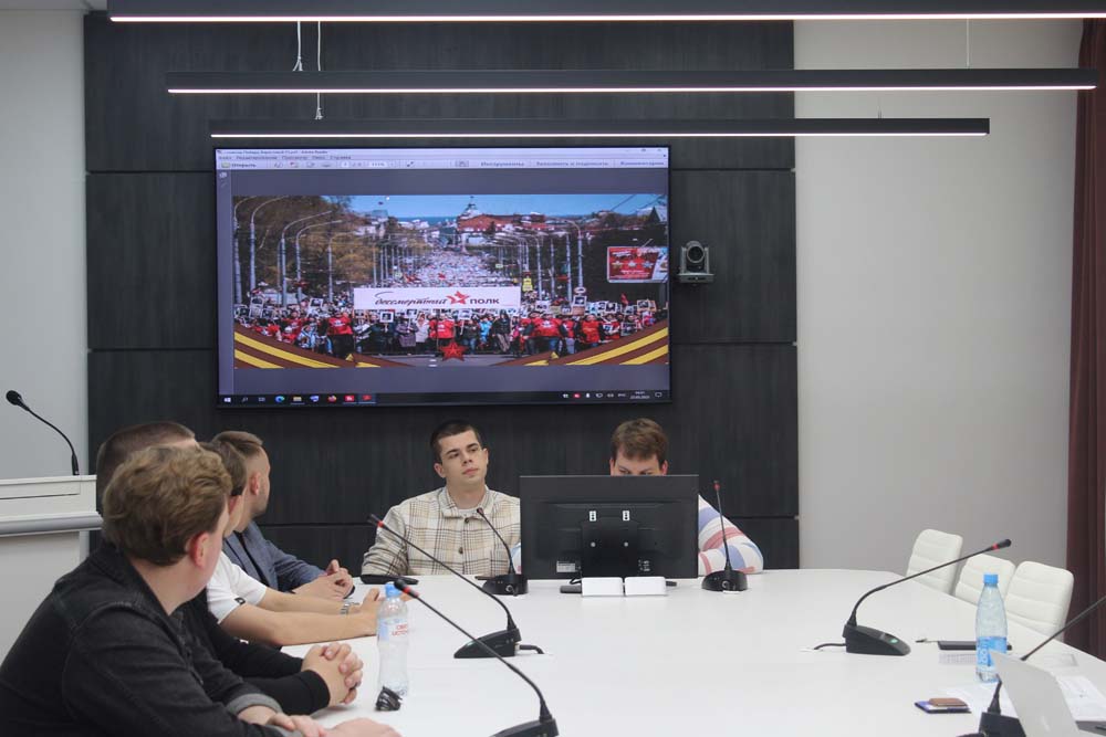 Представители студенческого международного интеграционного совета подготовили доклады, демонстрирующие интерес и уважение к великому подвигу русского народа. Открылся круглый стол докладом на тему «Символика Победы в медиапространстве: от плакатов 1945 года к цифровым форматам», который подготовил Илья Берестовой. Он рассказал о наглядной агитации, о таких символах, как Знамя Победы, Орден «Победа», Вечный огонь на Могиле Неизвестного Солдата.