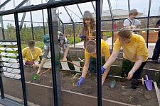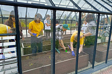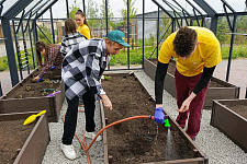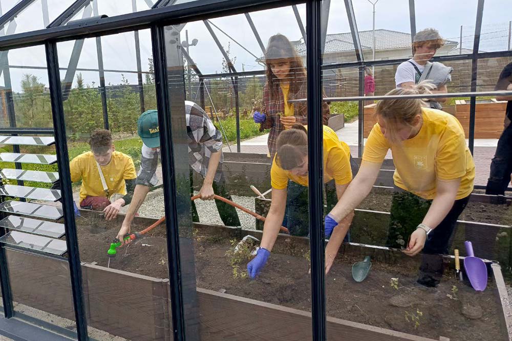 После экскурсии будущие учителя – студенты факультета математики и естественнонаучного образования – высадили в школьной теплице рассаду чтобы их будущие ученики могли на практике ознакомиться с биологическими объектами.