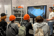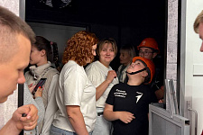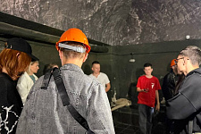 Экскурсионная программа началась со знакомства с учебным полигоном «Шахта». В роли экскурсовода выступил студент института наук о Земле Никита Вереитин. Он показал ребятам клеть, рудный двор, вентиляцию, буровые установки. Ребята смогли увидеть, как работает горное оборудование и происходит процесс разработки руды.