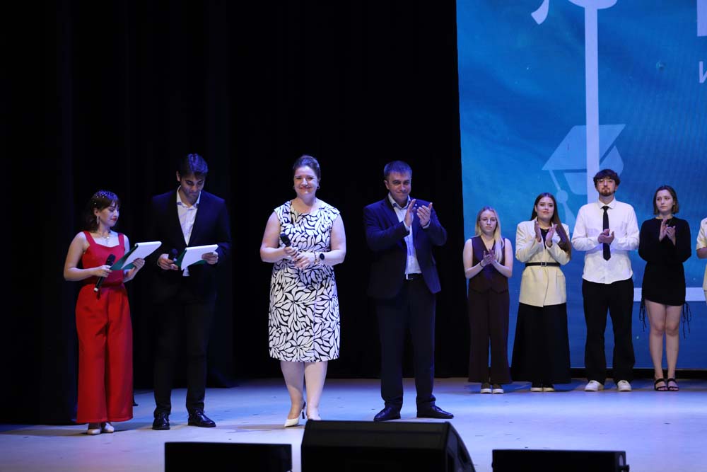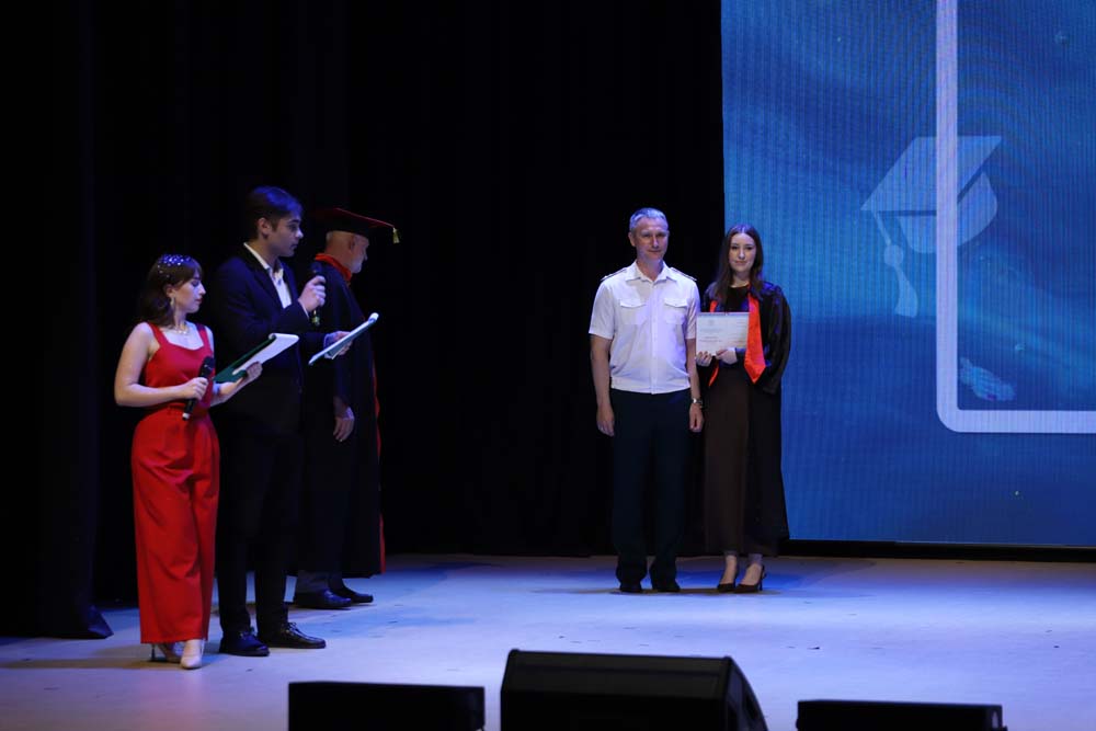 Церемонию вручения дипломов сопровождали выступления творческих коллективов университета, которые подарили зрителям вокальные и танцевальные номера.