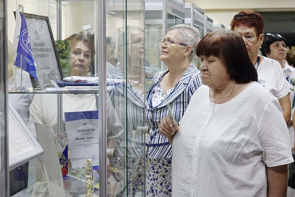 Белгородский госуниверситет в очередной раз открыл свои двери самым активным горожанам. Экскурсию по вузу провела директор Центра истории Ирина Денисова. Знакомство с университетом началось с его полуторавековой истории и достижений студентов, сотрудников и университета в Центре истории. Белгородцам продемонстрировали выставочный проект «Нет в России семьи такой, где б не памятен был свой герой», посвященный 80-летию Победы в Великой Отечественной войне и Году защитника Отечества.