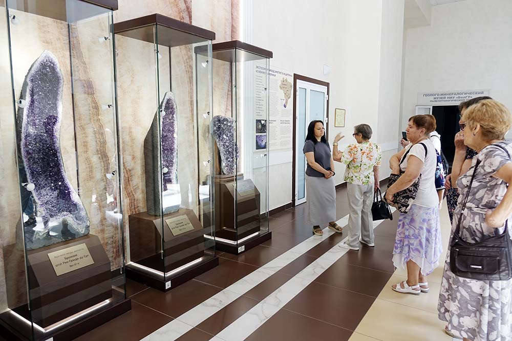 Участники экскурсии познакомились и с интересными локациями вуза. Гости побывали в учебно-выставочном центре «Геолого-минералогический музей имени А.Н. Петина» НИУ «БелГУ», в экспозиции которого собрано более 150 витрин с образцами минералов, горных пород, окаменелостей со всего мира, почвенными профилями Белгородчины. Посетили они и зимний сад НИУ «БелГУ», где собрана богатая коллекция тропических и субтропических растений. А на выставке научных достижений горожане познакомились с новыми разработками учёных нашего университета.