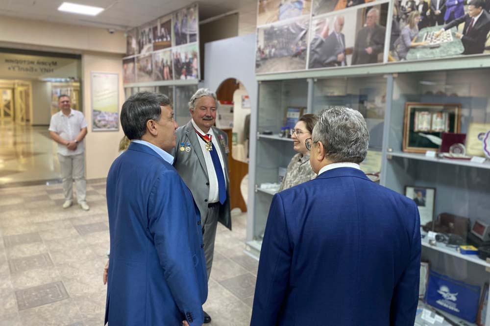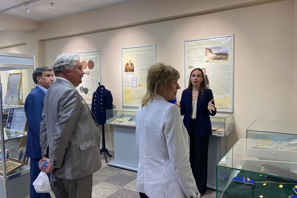 Гости вуза посетили Центр истории НИУ «БелГУ», где ознакомились с богатой историей университета, в том числе в годы Великой Отечественной войны. Их особо тронула история выпускников 1941 года тогда ещё учительского института, большая часть которых в первые дни войны ушла на фронт, а оставшиеся в Белгороде влились в формировавшуюся в городе 299-ю стрелковую дивизию, отправившуюся на поля сражений в августе 1941 года.