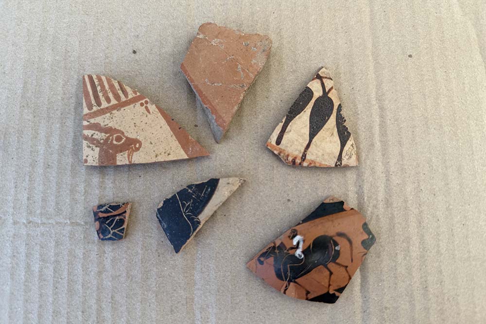 Среди уникальных находок – фрагменты расписных чернолаковых сосудов, в том числе, с граффити, фрагмент терракотовой статуэтки, бронзовая монета.
