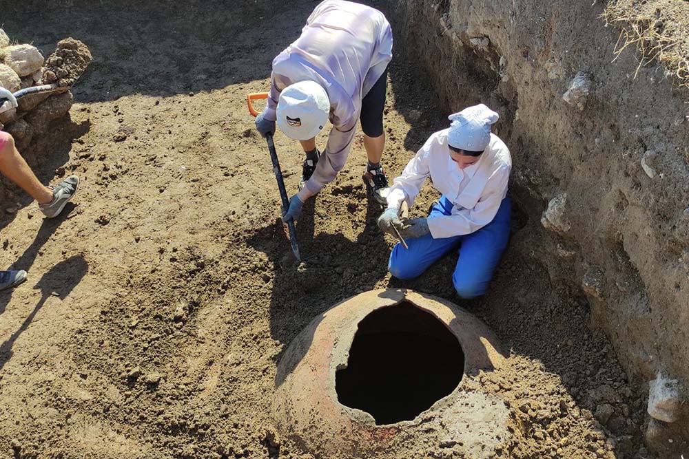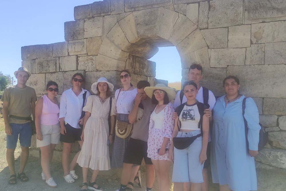 ؘ– В этом году наши студенты приехали сюда 28 июля, и именно здесь, в поле, отпразднуют 15 августа День археолога. Древнейшие следы жизни людей на этом месте, по имеющимся сведениям, относятся к концу эпохи бронзы – началу раннего железного века (рубеж II – I тыс. до н.э.). В античную эпоху поселение переживает свой расцвет и превращается в небольшой город, жители которого, по-видимому, занимались сельским хозяйством и посреднической торговлей с окружающим варварским населением. Статус этого поселения и его название ещё окончательно не выяснены, однако исследователями выявлены элементы, которые можно трактовать, как части городской застройки: фрагменты фортификационных сооружений, многочисленные участки стен домов VI–IV вв. до н.э., хозяйственные ямы, колодцы, склады амфор, – рассказала Елена Александровна.