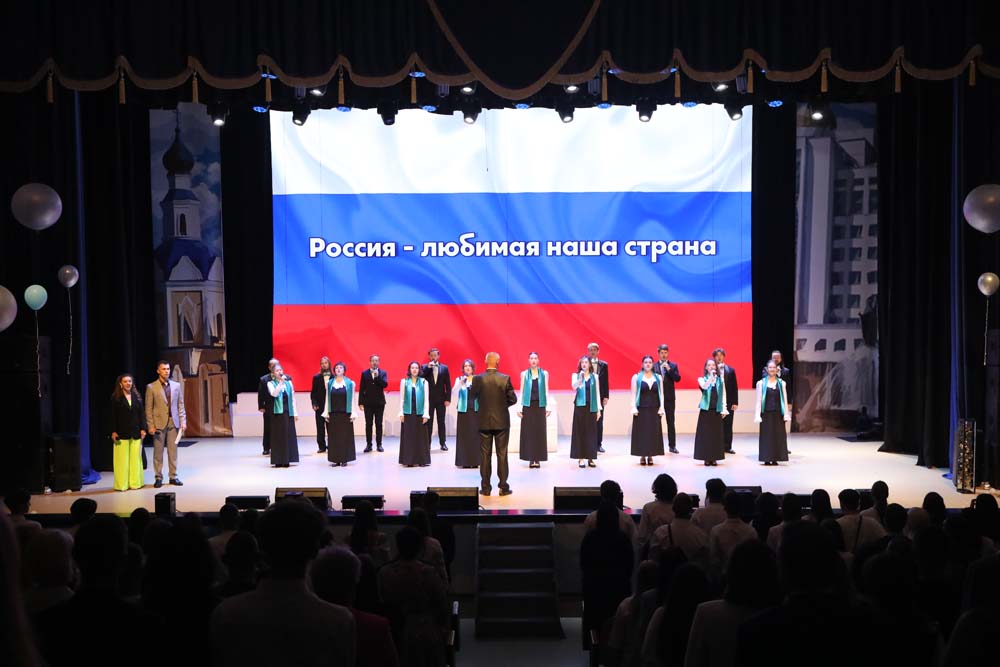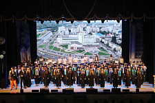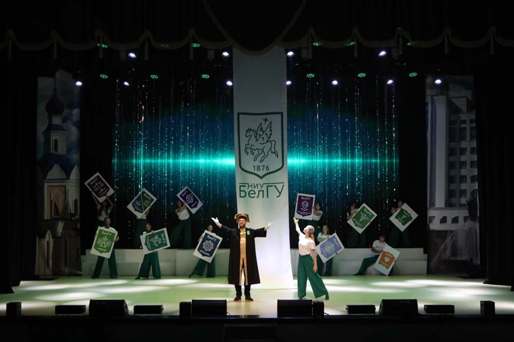 Хорошее настроение зрителям подарили творческие коллективы вуза, Академический хор НИУ «БелГУ» под руководством Урузмага Танделова исполнил Гимн России, а будущие выпускники 2025-2026 года обучения – гимн университета.