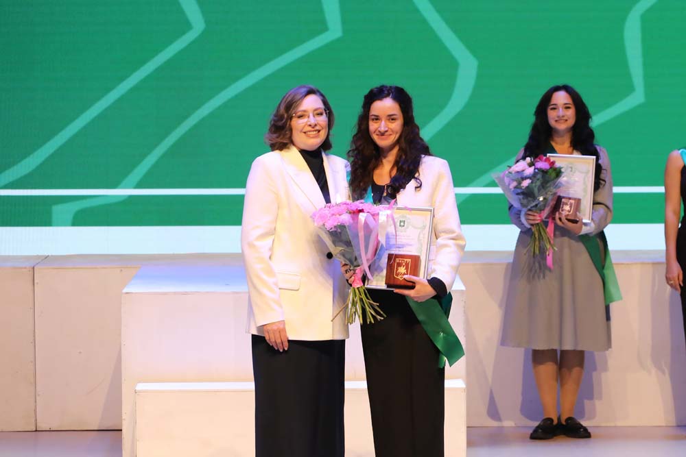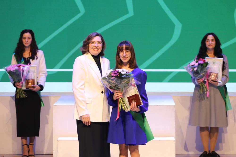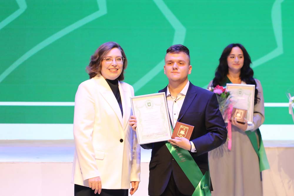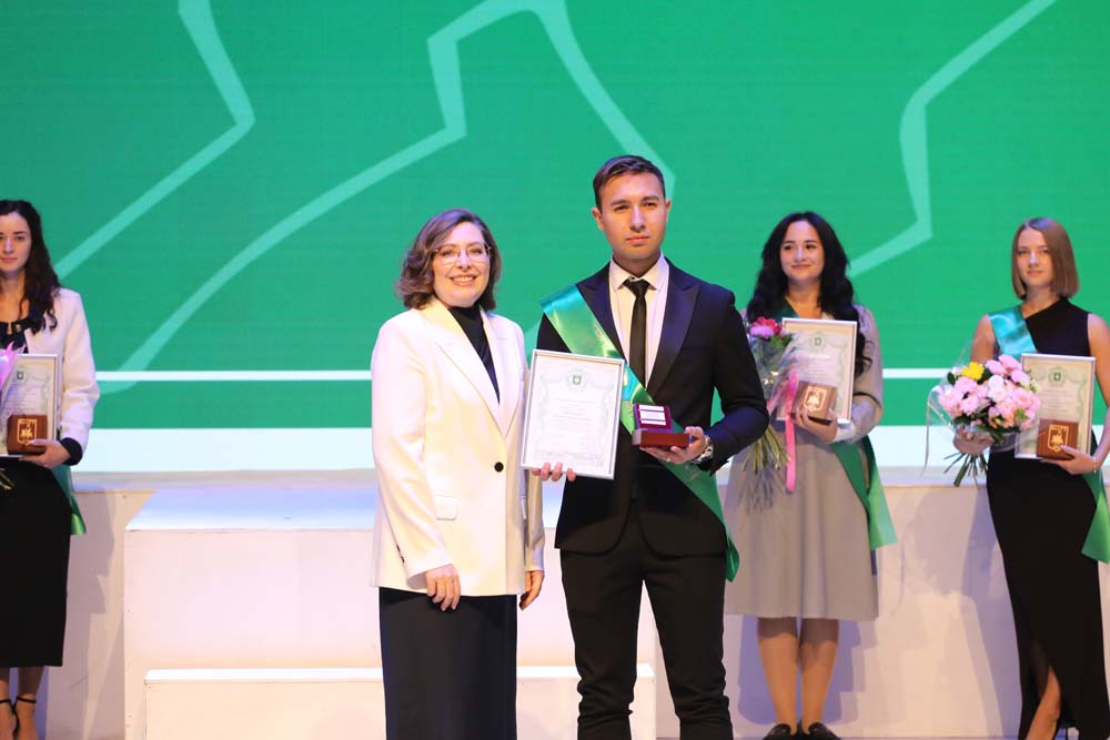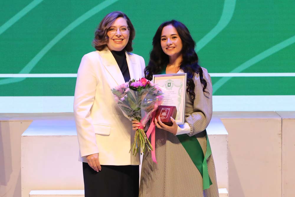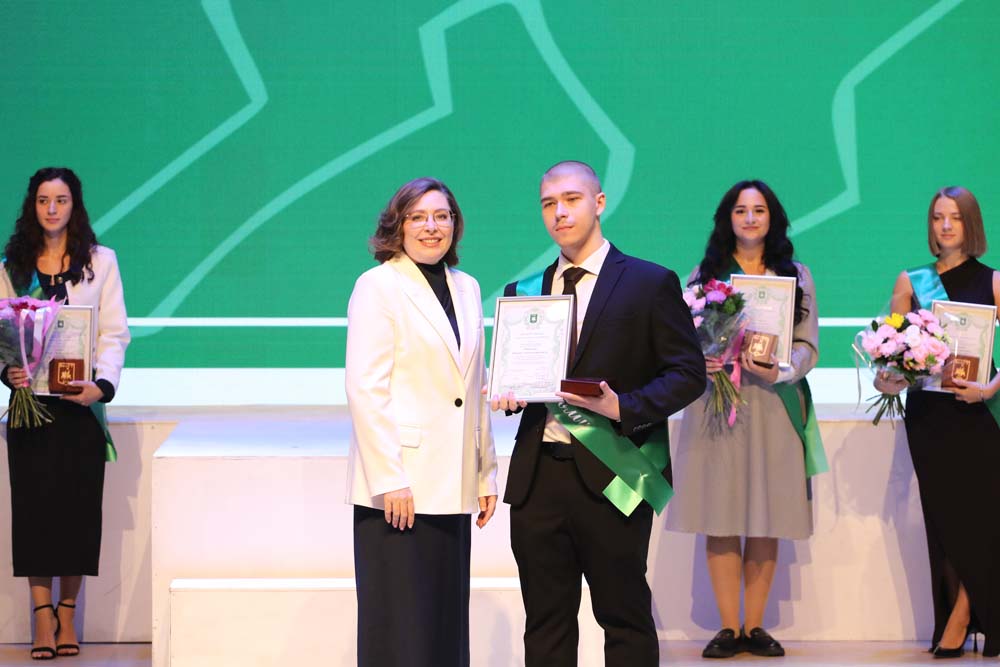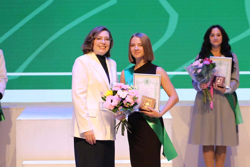 Ректор Евгения Карловская во время торжественного мероприятия вручила памятные награды выпускницам Старооскольского филиала НИУ «БелГУ» Дарье Базаровой, медицинского института Елизавете Боевой, института межкультурной коммуникации и международных отношений Ксении Буниной, юридического института Владе Кобзевой, института наук о Земле Елизавете Палтышевой, педагогического института Софье Тихомировой, института инженерных и цифровых технологий Анне Шайковой, а также выпускникам института общественных наук и массовых коммуникаций Павлу Головину, института экономики и управления Артёму Лисицкому и института фармации, химии и биологии Игорю Тарасову.