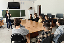 Заведующая кафедрой автоматизированных систем и технологий Татьяна Балабанова рассказала школьникам, чему и как обучаются студенты, поступившие на специальность «Информационно-аналитические системы безопасности», а также, где они могут применить свои знания после выпуска.