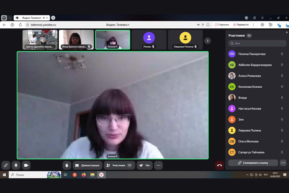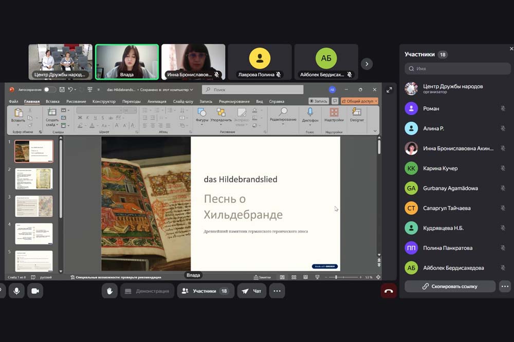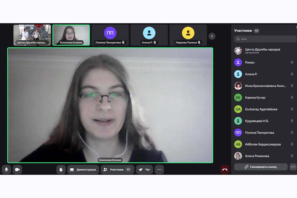 Участниками мероприятия стали студенты и сотрудники вуза из России, Германии, Туркменистана, Узбекистана, Эквадора, обучающиеся в педагогическом институте, институте межкультурной коммуникации и международных отношений. Студентов и преподавателей, пришедших в Центр дружбы народов и присоединившихся ко встрече в онлайн-формате, приветствовала директор Международного информационного центра Департамента международного сотрудничества Ольга Лютова.