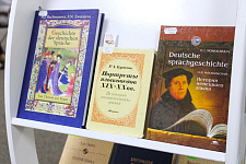 Особую атмосферу встрече придала книжная выставка, подготовленная Научной библиотекой имени Н.Н. Страхова, на которой представлены не только издания на немецком языке, но и экземпляры, отпечатанные непосредственно в Германии в первой половине 20 века.