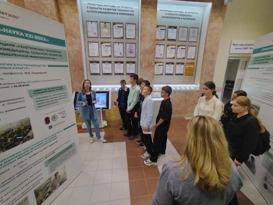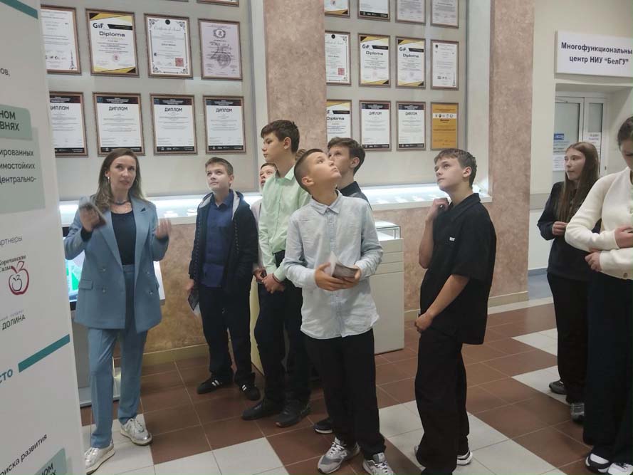 После мастер-класса школьникам провели экскурсию по Выставке научных достижений НИУ «БелГУ», которую провела доцент кафедры информационно-телекоммуникационных систем и технологий Александра Медведева. Ребят познакомили с результатами прикладных исследований и разработок, с инновационными достижениями университета в различных научных сферах, а также презентовали высокотехнологичные проекты научных коллективов вуза в машиностроении, которые неоднократно участвовали в престижных международных выставках.