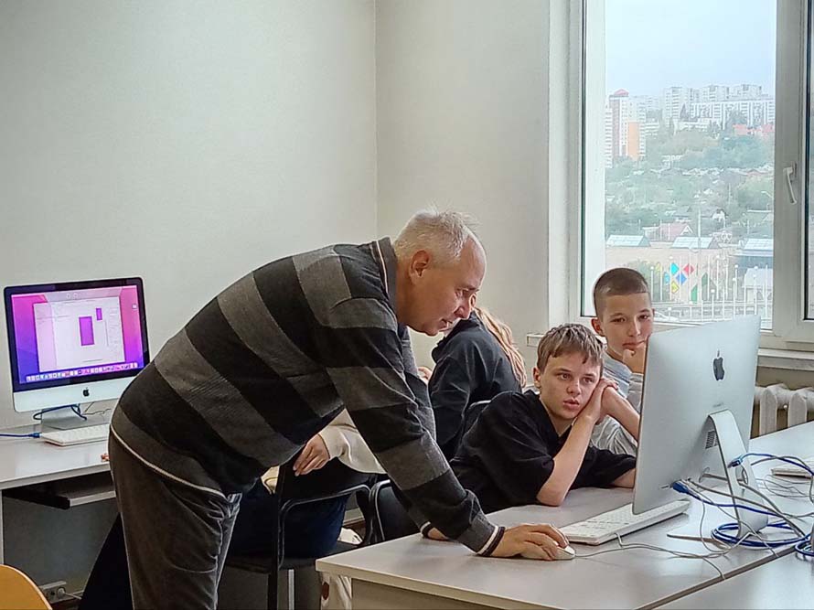Под руководством Юрия Геннадьевича школьники погрузились в практику, работая в специализированной среде для конструирования мобильных приложений на платформе IOS. Осваивая интерфейс и логику построения приложений для Apple, они поэтапно создавали собственный калькулятор.