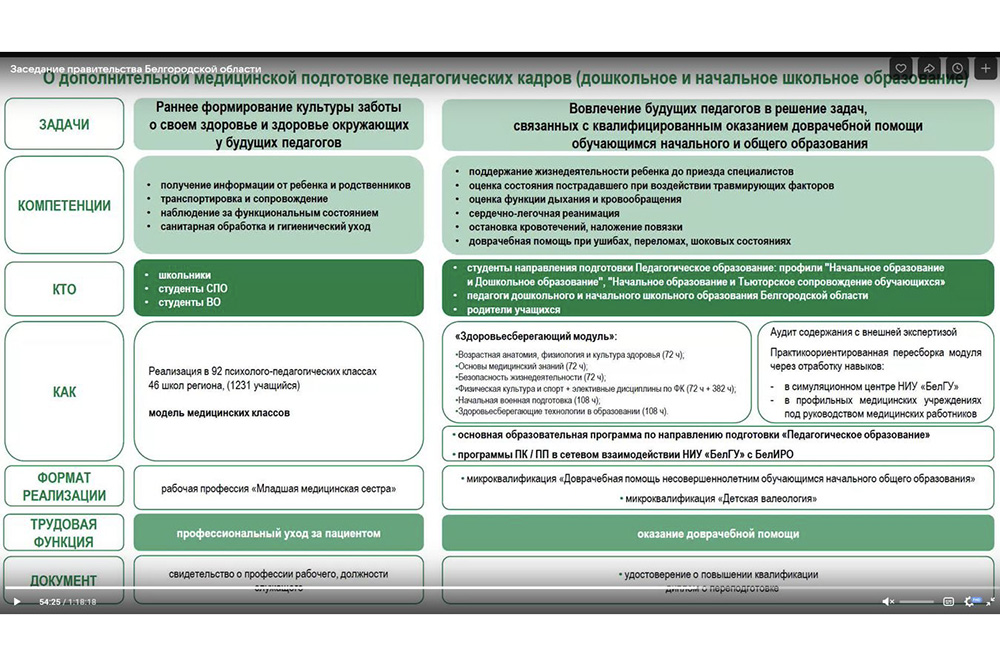 В настоящее время проводится аудит содержания практической части модуля с привлечением внешних экспертов – представителей Министерства здравоохранения и Министерства образования Белгородской области.