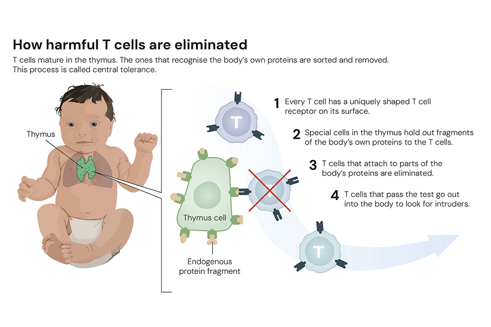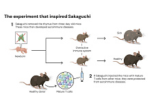Учёный объяснил, что развитием регуляторных Т-клеток управляет ген Foxp3. Эти T-reg-клетки контролируют другие иммунные клетки, в том числе клетки-киллеры, которые должны уничтожать нежелательных пришельцев, но иногда могут выходить из-под контроля. Именно так наша иммунная система обеспечивает толерантность к собственным тканям.