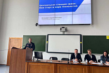 С презентацией о возможностях Молодёжного совета Воронежской дирекции связи для студентов и выпускников университета выступил Фёдор Зеленин.