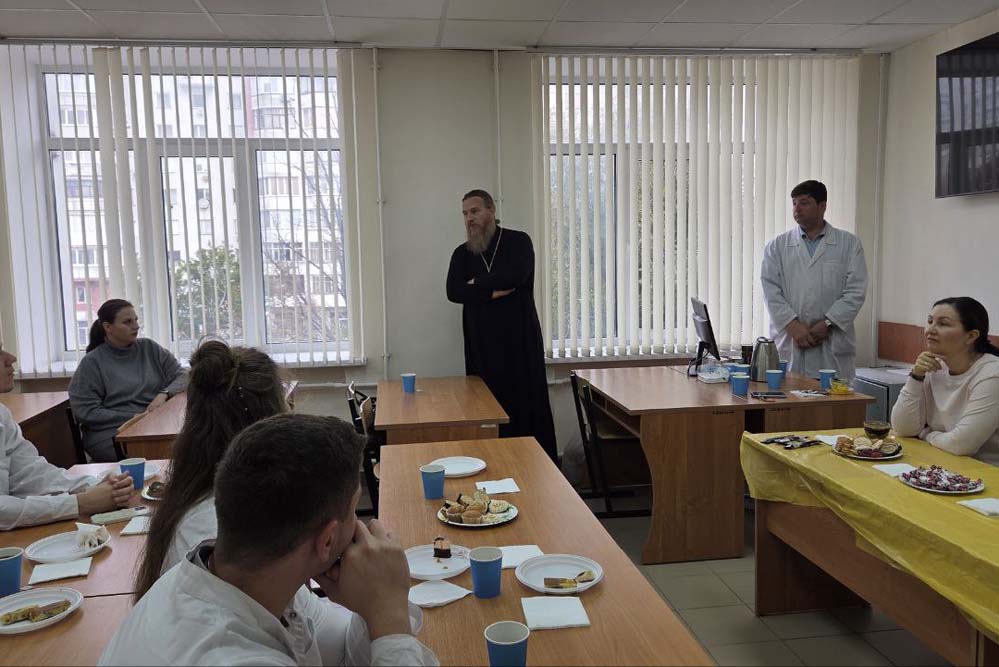 – Сегодня у нас была возможность обсудить действительно важные аспекты, неразрывно связанные со всеми аспектами жизни врача: и работой, и семьёй, и учёбой. Студенты задавали отцу Роману очень много вопросов и в конце встречи отметили, что она была для них очень полезной. И преподаватели, участвовавшие в сегодняшнем чаепитии, сошлись во мнении, что обсуждение таких вопросов в студенческие времена могло бы уберечь их от многих ошибок, – рассказала заведующая кафедрой микробиологии и вирусологии с курсом клинической иммунологии Ксения Бочарова.