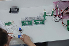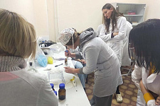 Затем студенты посетили мастер-класс «Электрофорез – сделано!», организованный кафедрой биохимии под руководством Евгении Сладковой. Активное участие в работе мастер-класса приняли ассистент кафедры биохимии Анастасия Нечаева и студентка института фармации, химии и биологии НИУ «БелГУ» Ангелина Моркель. Образовательное событие стало настоящим научным праздником. Студенты получили возможность освоить несколько практических навыков из лабораторных исследований: приготовили растворы и агарозный гель с нуля, попрактиковались в работе с дозаторами и самостоятельно нанесли образцы в лунки и пронаблюдали, как на гель действует электрический ток.