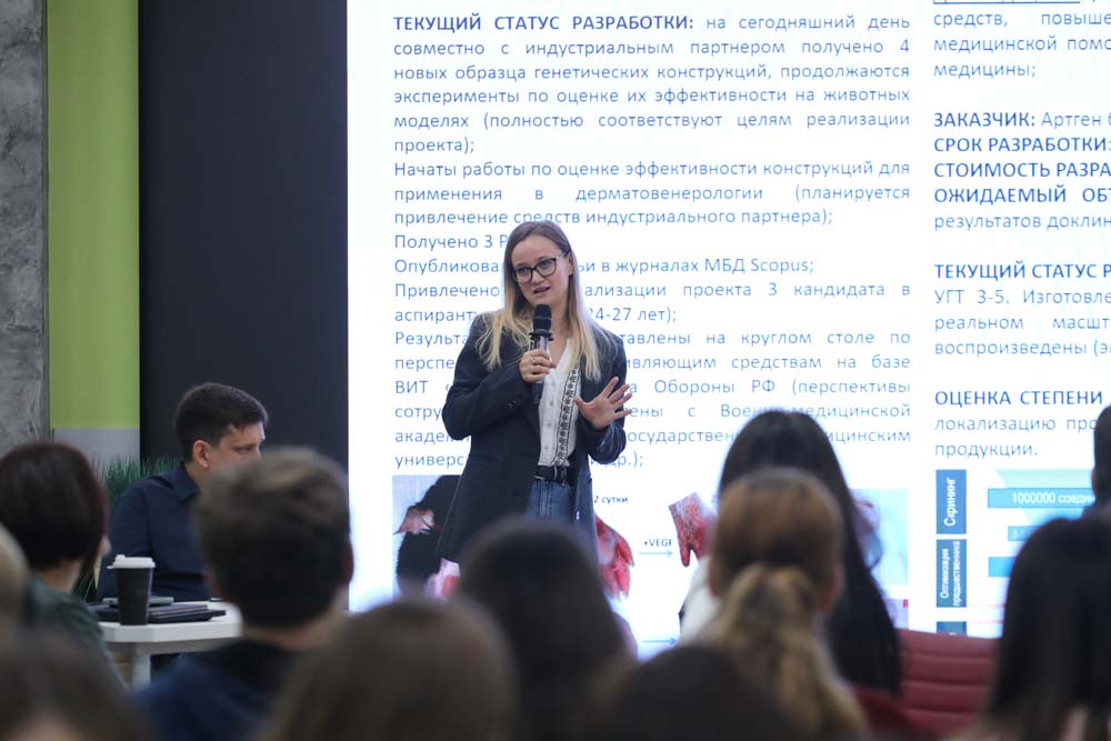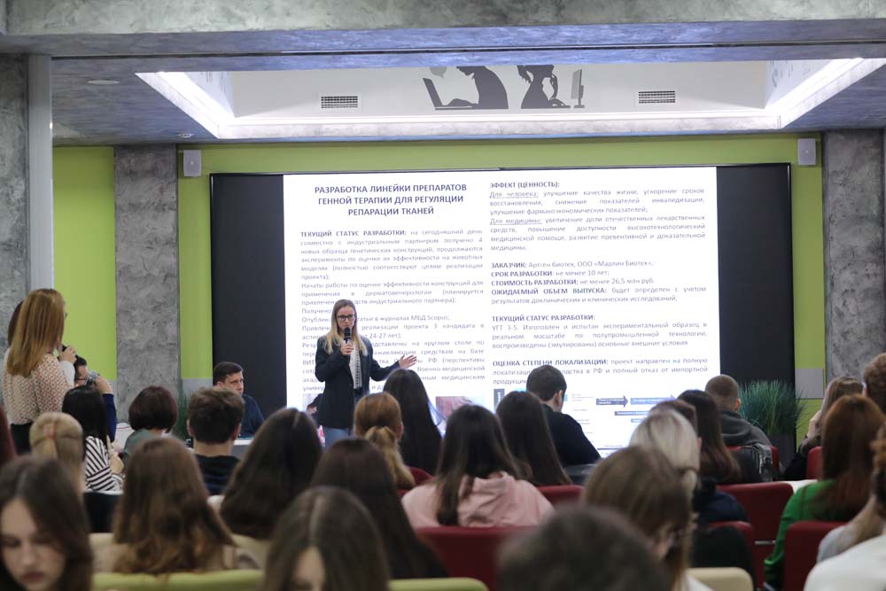 Доцент кафедры фармакологии и клинической фармакологии медицинского института НИУ «БелГУ» Дарья Костина представила ключевые факторы успеха проекта «Разработка линейки препаратов генной терапии для регуляции репарации тканей».