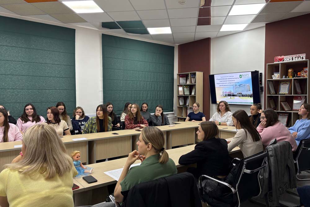 Важно сосредоточиться на работе педагога с детьми разных возрастов. На семинаре «Педагогическая компетентность участников психолого-педагогического сопровождения детей раннего возраста» под руководством доцентов кафедры дошкольного и специального (дефектологического) образования Людмилы Шинкаревой, Ирины Возняк и ассистента Анны Рожиной преподаватели и студенты обсудили успешные практики работы с малышами.