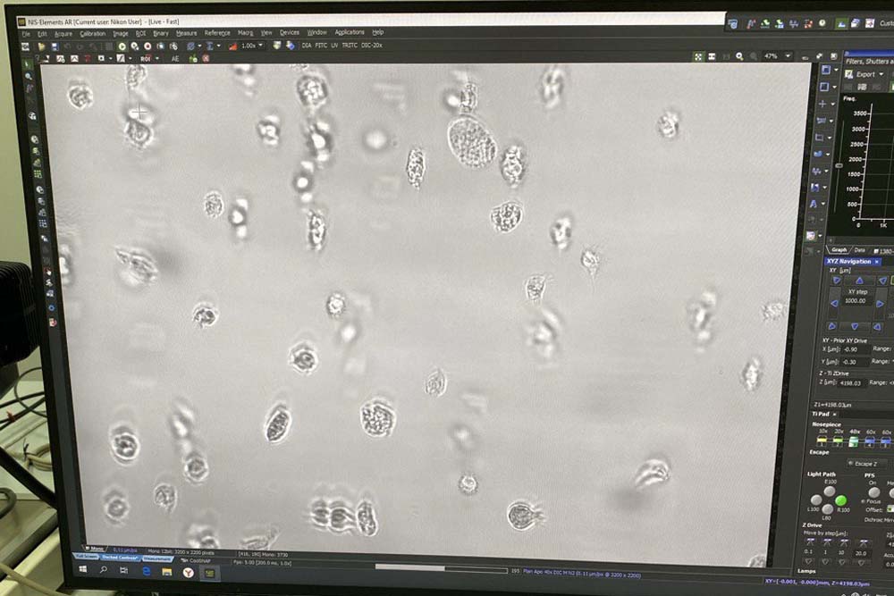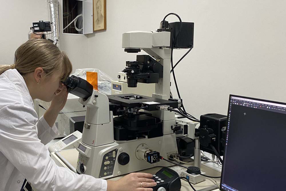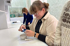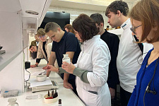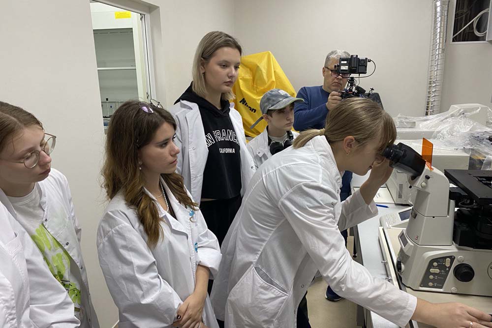 Студенты первого курса направления «Биотехнология» приняли участие в мастер-классе, посвящённом методам прижизненной визуализации биологических объектов. Образовательное событие провела доцент кафедры биологии Елена Гребцова. В ходе мастер-класса студенты освоили методику приготовления нативных препаратов. Также они приобрели первичные навыки работы с инвертированным микроскопом исследовательского класса и программным обеспечением для документирования данных. Выполнили учебно-исследовательское задание по морфологической идентификации типов клеток в гемолимфе насекомых. Этот практический опыт заложил важный фундамент для будущей работы с высокотехнологичным оборудованием и позволил по-новому взглянуть на мир клеточной биологии.