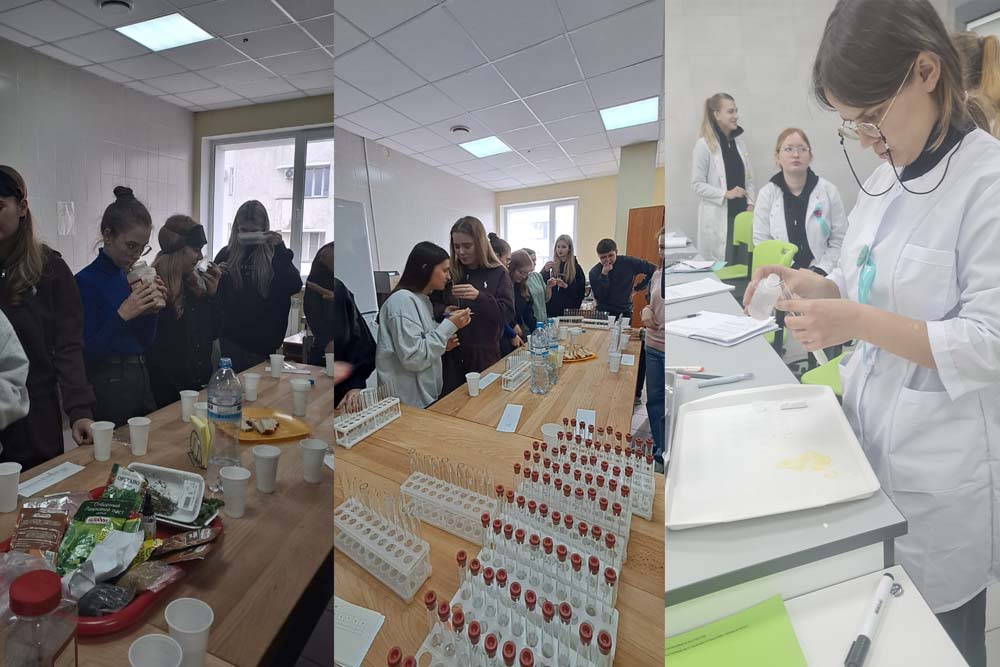 На кафедре технологии продуктов питания прошёл «Дегустационный квест», который состоял из нескольких частей экспериментов. В первой части участникам подготовили четыре образца различных вкусов (сладкий, кислый, солёный и нейтральный). Каждому образцу был присвоен код. С помощью органов чувств участники попытались определить пробы с закодированными образцами. Эксперимент позволил выявить дегустационную способность участников, а также определить тонкость вкусовых рецепторов.