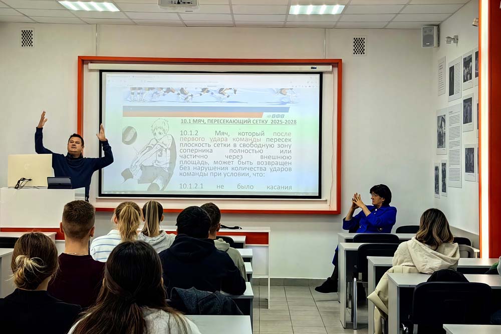 Практикоориентированной направленностью отличаются спортивно-образовательные мастер-классы. Судья международной категории по волейболу Максим Бердников подробно разъяснил участникам все нюансы правил этой увлекательной игры. А настоящим подарком для всех любителей спорта стала встреча с Президентом волейбольного клуба «Белогорье», олимпийским чемпионом Сергеем Тетюхиным. В ходе дискуссии «Современное состояние и перспективы развития волейбола в России» он поделился уникальным опытом и ответил на вопросы студентов.