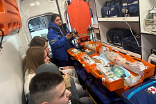 Чтобы потенциальные абитуриенты могли ознакомиться с каждым из направлений подготовки, преподаватели и студенты организовали для них интерактивные экскурсии по медицинскому колледжу и на Станцию скорой помощи.