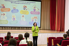 Во время классного часа «Ты в хорошей компании» гости познакомились с директором колледжа Владиславом Дубровой, педагогическим составом, пообщались с амбассадорами «Профессионалитета», которые рассказали о преимуществах обучения в рамках этого федерального проекта. Одним из таких является гарантия трудоустройства по окончании обучения.