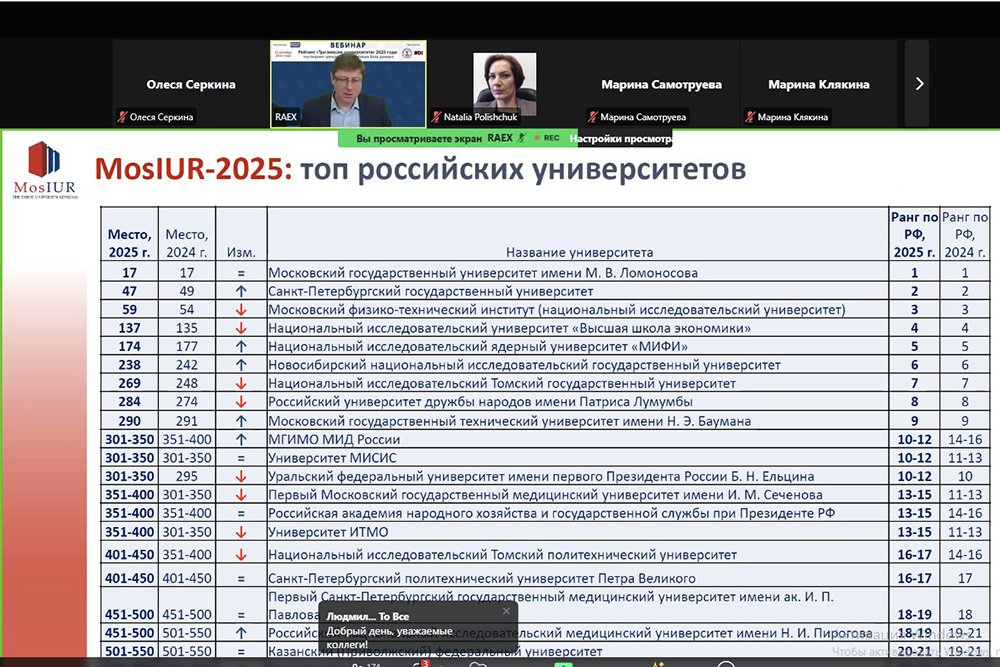 Как отметил глава Ассоциации составителей рейтингов, советник президента Российского Союза ректоров, заместитель председателя общественного совета при Минобрнауки РФ Дмитрий Гришанков, в рейтинге 2025 года заметно улучшились позиций вузов стран БРИКС