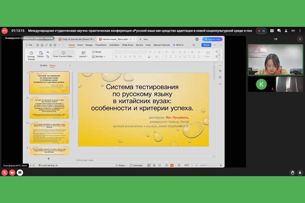 С приветственным словом к участникам из России, Китая, Узбекистана, Вьетнама, Бенина, Конго и Йемена обратились учёные института межкультурной коммуникации и международных отношений НИУ «БелГУ» и зарубежные партнёры. Директор ИМКиМО Ольга Прохорова, доцент кафедры русского языка, профессионально-речевой и межкультурной коммуникации Лиллия Петрова, а также доцент Фу Чуньхун из китайского университета Бэйхуа пожелали участникам продуктивной работы и подчеркнули ключевую роль русского языка в построении международной академической и профессиональной карьеры.