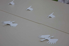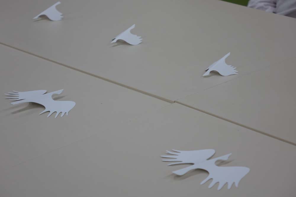 В заключение мероприятия участникам встречи были подарены бумажные журавлики как символ памяти и благодарности. Студенты написали на журавликах имена своих родных, погибших в различных войнах, которые были размещены на стенде «Клин белых журавлей».