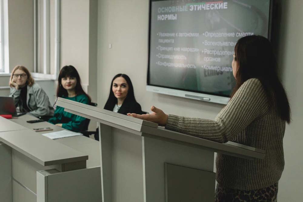 На воркшопе Разработка этических стандартов для исследований в сфере биоматериалов и регенеративной медицины биоматериалов и регенеративной медицины» доцент кафедры теории и истории государства и права Виктория Кутько рассказала, как стремительное развитие биотехнологий сталкивается с моральными дилеммами. В центре обсуждения оказался принцип «допустимого вреда», при котором во имя спасения жизни допускаются вмешательства, способные сами по себе причинить ущерб.