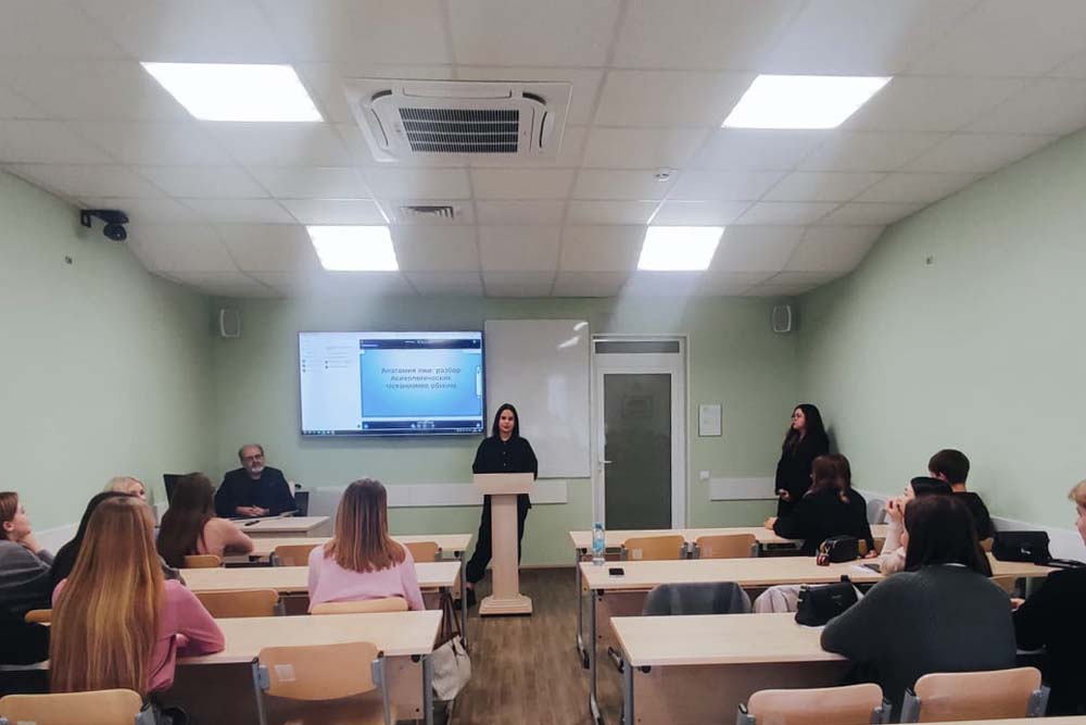 В процессе занятия ассистенты кафедры возрастной и социальной психологии Юлия Полякова и Валерия Мироненко на материале современных тематических кинокартин раскрыли индикаторы лжи, проанализировали научно обоснованные методики её распознавания. Совместно с обучающимися преподаватели продемонстрировали отработку навыков, характеризующих ложь, а также разобрали формирование защитных механизмов.