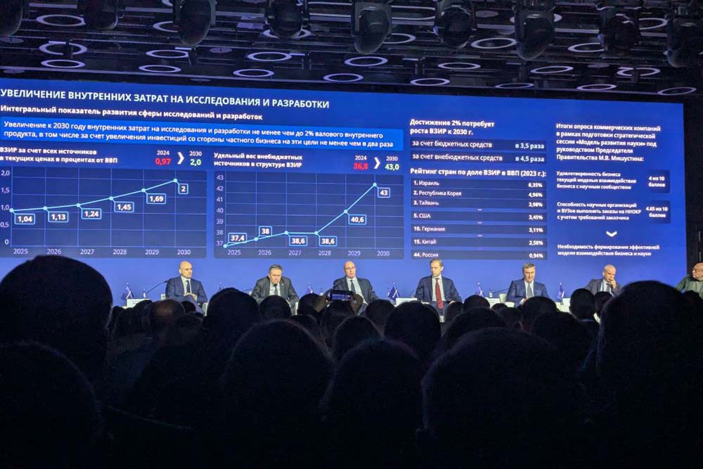 Заместитель Председателя Правительства России Дмитрий Чернышенко отметил, что по поручению Президента Владимира Путина затраты на науку должны вырасти до 2% ВВП к 2030 году и составят порядка 6 трлн 200 млрд рублей. В качестве одного из вызовов для вузов Дмитрий Николаевич отметил необходимость повышения уровень способности научных организаций и вузов выполнять заказы на НИОКР с учетом требований заказчика.