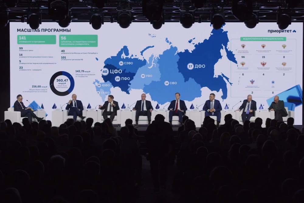 Представители Правительства страны и федеральных министерств, госкорпораций и крупных промышленных холдингов, ректоры и ведущие учёные российских университетов обсудили вызовы для системы высшего образования и ключевые задачи программ технологического лидерства университетов.