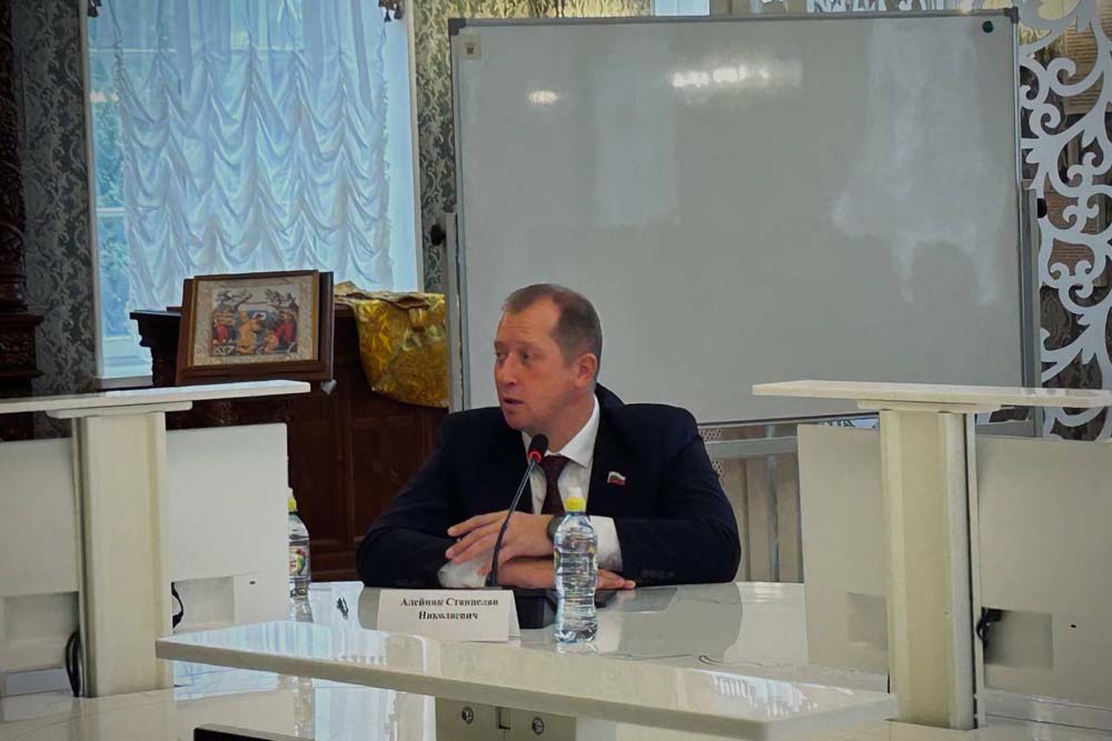 С приветственным словом к участникам круглого стола выступил депутат Белгородской областной Думы, ректор Белгородского государственного аграрного университета им. Василия Горина Станислав Алейник. В своём выступлении он сделал акцент на том, что подрастающее поколение необходимо учить на примере героического подвига наших предков. Каждый из нас должен помнить о героях своей семьи и героях своей страны.