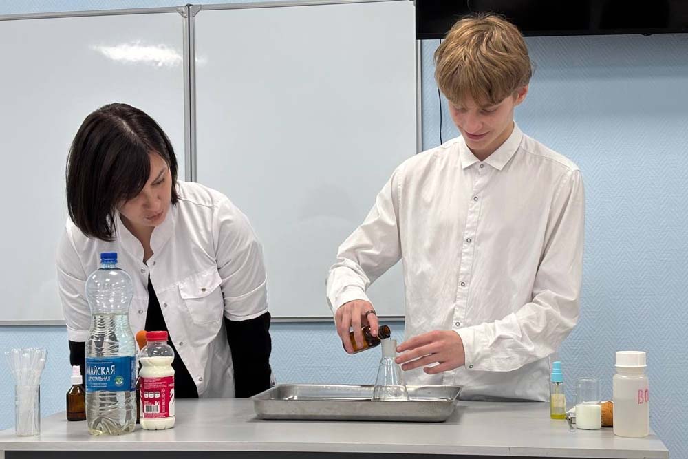 Провели десант преподаватели кафедры общей химии Людмила Дейнека, Ирина Блинова, Елена Олейниц и студент Даниил Завацкий. Школьники проверили качество некоторых пищевых продуктов и подлинность фармацевтических препаратов. В итоге «Химический десант» не только способствовал популяризации научных знаний среди молодёжи, но и предоставил учащимся возможность получить практический опыт в области химического анализа, что является важным аспектом их дальнейшего профессионального развития.