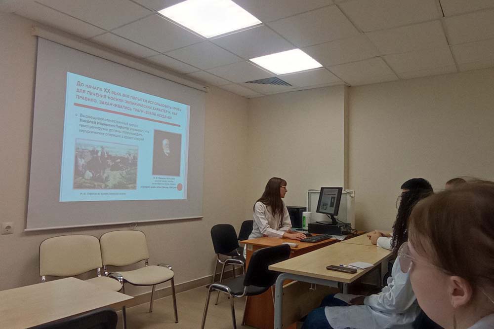 На кафедре семейной медицины доцент Юлия Шеховцова провела лекцию на тему «Кровь – это жизнь», погрузив студентов во все этапы донорства крови. Будущие врачи получили возможность увидеть, как с помощью современных методов заготавливают компоненты донорской крови. Особое внимание спикер уделила донорству клеток костного мозга, а также новым тенденциям в этой области, включая формирование федерального регистра доноров костного мозга.