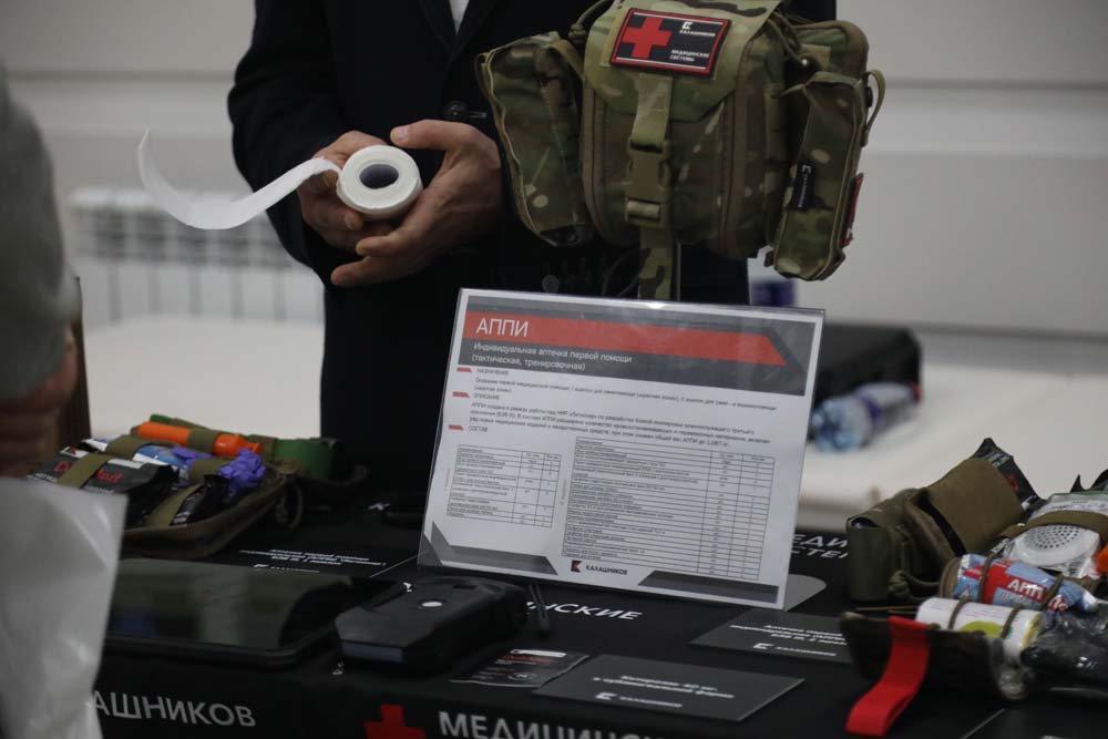 Открытие Всероссийской научно-практической конференции «Актуальные вопросы оказания медицинской помощи на территории приграничных регионов в условиях проведения специальной военной операции» предваряла выставка, на которой было представлено медицинское оборудование, необходимое для неотложной помощи, специализированная атрибутика и литература.