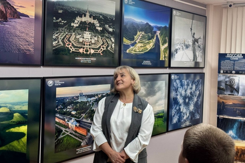 Презентовала фотовыставку Русского географического общества «Россия с высоты птичьего полёта» доцент НИУ «БелГУ», секретарь Белгородского отделения РГО Лариса Марциневская, рассказав гостям о каждой представленной работе, о неповторимости нашей страны и её ландшафтов, природном и культурном наследии.