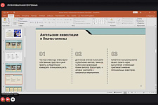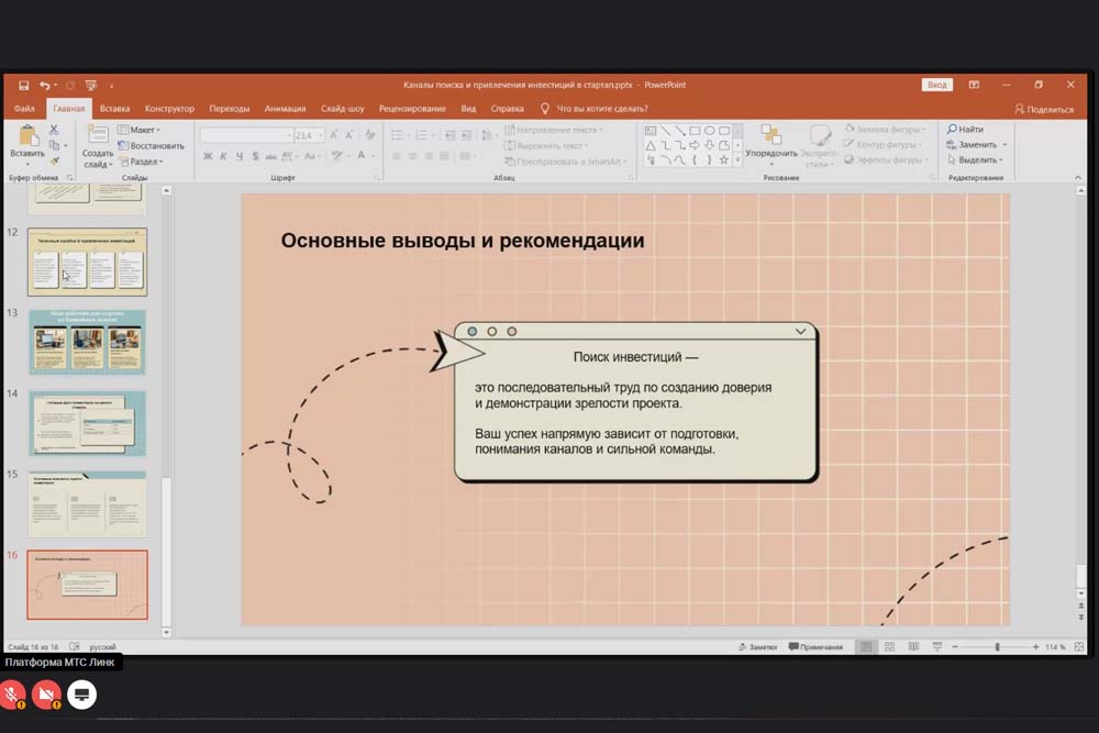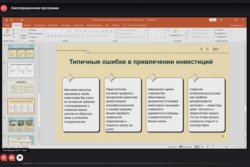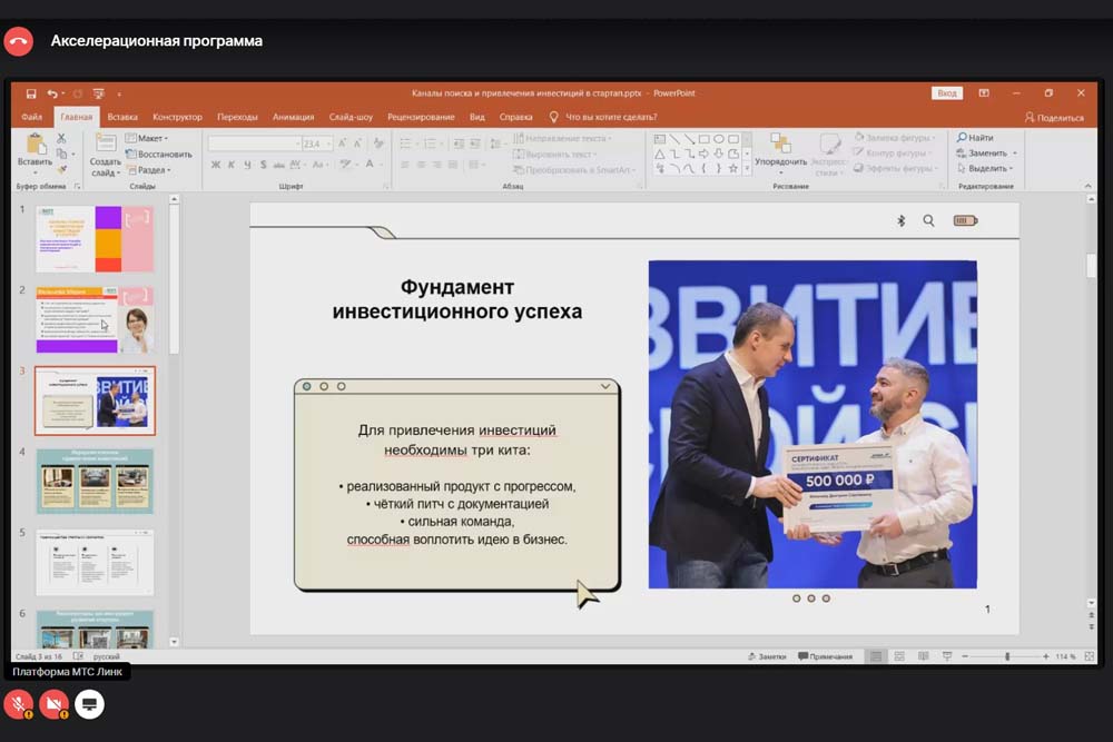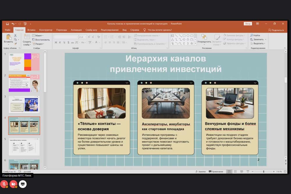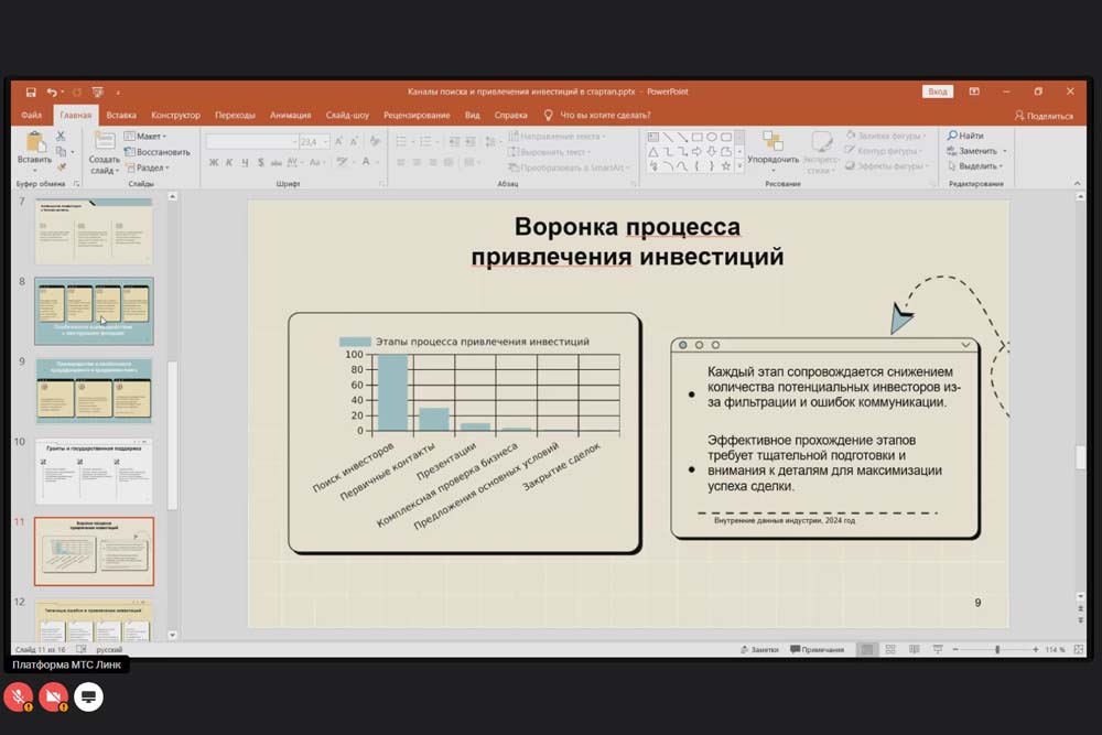 В своём мастер-классе спикер сделала упор на самопрезентацию и работу над собственным имиджем. Она отметила, что инвесторы часто обращают внимание на внешность, поэтому важно создать аккуратный деловой образ, который поможет выстроить доверительные отношения с потенциальными партнёрами.