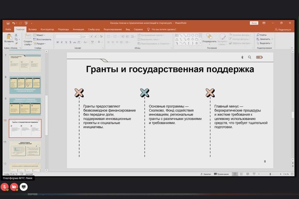 – Участие в грантовых конкурсах, акселераторах или просто выступление перед инвесторами требует тщательной подготовки и репетиций. Проработайте сценарий своей презентации, выпишите все цифры – они могут понадобиться, если вам зададут какой-то вопрос, касающийся конкретики. Не лишним будет пройти курс ораторского и актёрского мастерства, – поделилась эксперт.