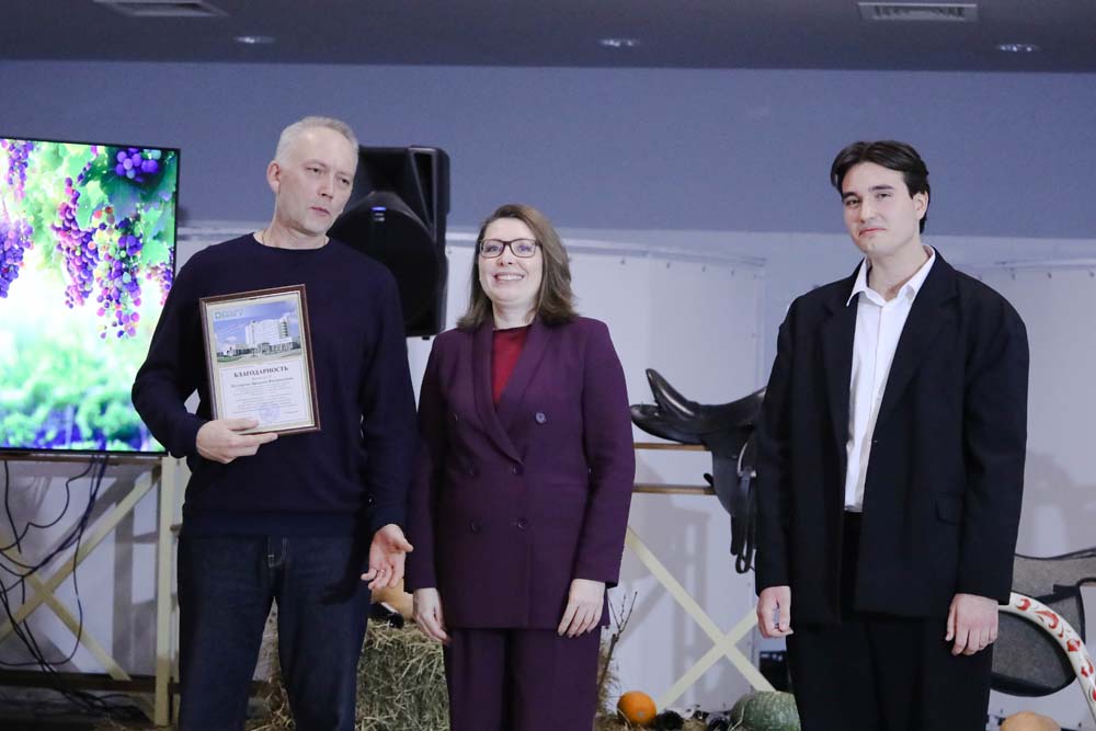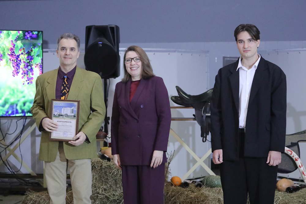 Продолжилось мероприятие приятным моментом – за большой личный вклад в успешную реализацию проекта по интродукции сортов технического винограда в Центрально-Чернозёмном районе России благодарность НИУ «БелГУ» из рук ректора получили заведующий экспериментально-биологической клиникой НИИ Фармакологии живых систем НИУ «БелГУ» Аркадий Нестеров, заведующая лабораторией биотехнологии растений НОЦ «Ботанический сад НИУ «БелГУ» Людмила Тохтарь, начальник управления ландшафтной архитектуры Марина Евтухова, главный технолог лаборатории клеточных технологий и геномного редактирования растений НИИ Фармакологии живых систем Наталия Стоянова, старший научный сотрудник Научно-исследовательского центра геномной селекции Антон Сычёв, младший научный сотрудник лаборатории доклинических исследований НИИ Фармакологии живых систем Пётр Лебедев, инженер лаборатории клеточных технологий и геномного редактирования растений НИИ Фармакологии живых систем Вера Языкова, лаборант-исследователь Лаборатории генетических технологий и генного редактирования для биомедицины и ветеринарии Алина Апостол, химик-эксперт лаборатории токсикологических исследований НИИ Фармакологии живых систем Игорь Ефременко, специалист отдела благоустройства управления ландшафтной архитектуры Станислав Апостол и мастер зелёного хозяйства Сергей Лев. Также заслуженные награды Евгения Анатольевна вручила доцентам кафедры фармакологии и клинической фармакологии медицинского института Татьяне Автиной и Юлии Степенко.