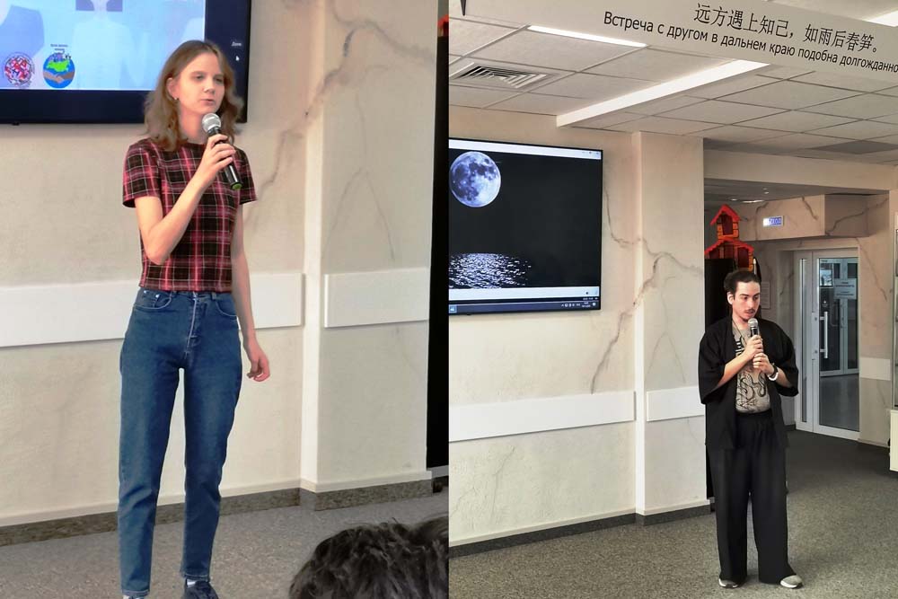 Все конкурсанты продемонстрировали великолепное владение иностранными языками и навыки декламации поэзии и прозы. Поэтическое чтение они сопровождали презентациями и музыкой, превращая свои декламации в театрализованные мини-представления. А проникнуться атмосферой праздника иностранных языков участникам и гостям помогали студентки ИМКиМО Дарина Леонтьева и Екатерина Семенкова, которые блестяще справились с ролью ведущих мероприятия.