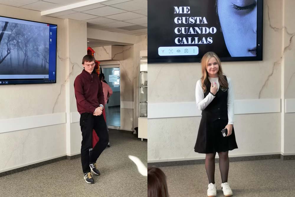 В завершение мероприятия зрителей порадовало проникновенное исполнение композиции на французском языке дуэтом будущих переводчиков Екатерины Волобуевой и Вероники Святец из группы 04002113.